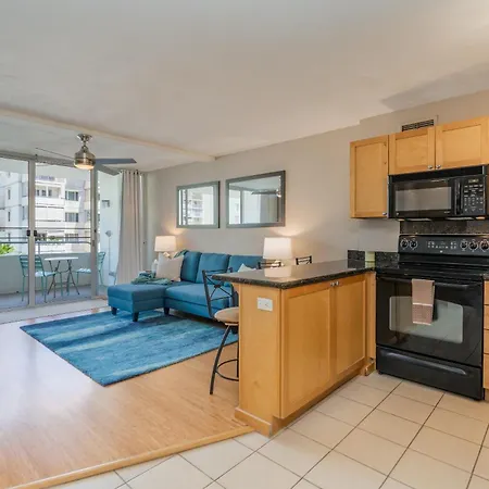 The 1-room Centrally Located Waikiki Condo - Accommodates 4 Honolulu includes a spa centre, within 5 minutes' walk of the Waikiki Shopping Plaza. The calm - water Kuhio Beach Park is located 850 metres away, and Kuhio Beach Torch Lighting & Hula Ceremony is in proximity to the 59 m² apartment.